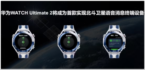 值得注意的是,在今年 9 月举办的第四届北斗规模应用国际峰会上,华为与中国时空合作,联合发布北斗卫星语音消息功能。其中华为 WATCH Ultimate 2 成为首款支持北斗卫星语音消息的终端,支持在野外无移动网络的环境下,通过卫星发送语音消息,用户无需费力打字,即可快速传递关键信息。