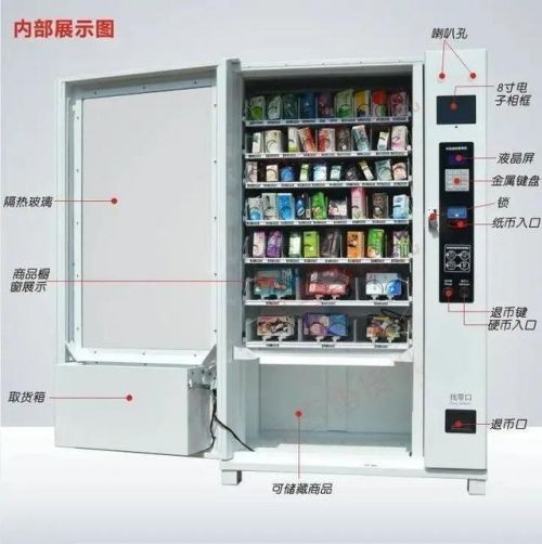有的机器配有透明玻璃橱窗,陈列几十种不同商品,有的像一台自动小超市,你可以自由开门挑选,关门后它就“知道”你买了什么。