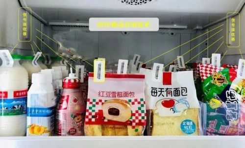 另一种方式是给每一个商品贴上 RFID 标签。RFID 即“射频识别”,是一种非接触式数据传输技术。每个标签里都储存有商品的身份信息,当用户将物品拿出时,RFID 读写器会感知该商品“离开了货柜”。