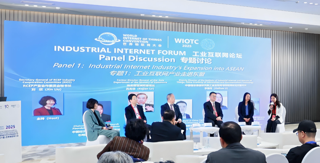 在备受瞩目的“工业互联网产业走进东盟”专题对话环节,鼎欣科技董事长郭明星作为重要对话嘉宾,与RCEP产业合作委员会秘书长刘欣、中国经济改革研究基金会理事长石明磊、商务部亚洲司原司长吕克俭、中国信息通信研究院工业互联网与物联网研究所副所长李海花等5位专家领导同台,共探工业互联网产业出海实践路径的核心挑战与破局之道。